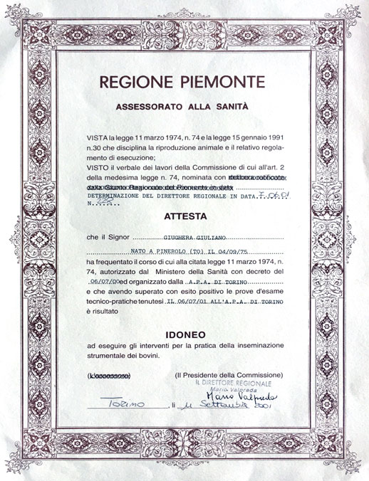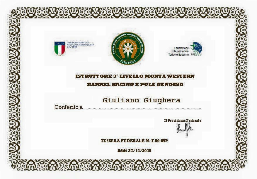 Le prime esperienze nella lavorazione dei campi e nel settore della genetica Giuliano Giughera, classe 1975, deve la sua preparazione poliedrica all'azienda di famiglia nella quale si è formato - Le Pasture - che negli anni ha operato in diversi ambiti tra cui i più significativi: l’allevamento di bovini, la lavorazione per conto proprio e per conto terzi di terreni agricoli attraverso macchinari professionali, la preparazione di campi da golf e da calcio, le opere di livellamento del manto stradale, la messa in posa di capannoni, tondini, e staccionate, i lavori forestali.Grazie anche al contributo di corsi e stage in Italia e all’ estero (tra cui corsi di formazione presso la CLAAS in Germania per l’utilizzo di macchine operatrici particolari) Giuliano ha avuto modo di entrare a contatto con ditte di settore con le quali ha portato avanti delle vere e proprie sperimentazioni sulle compattezza dei terreni, sulle reazioni chimiche che avvengono umidificando e/o deumidificando i medesimi, oppure cambiando le miscele delle composizioni, studiando in particolar modo il carico per la posa di pavimentazioni, la tenuta, l’assestamento, la calpestabilità, etc. Quindi accanto all’ esperienza maturata nella preparazione di pascoli e terreni per l’allevamento di equini e bovini, ha potuto coltivare anche molti altri settori che sempre più lo hanno avvicinato all’ ambito sportivo dove si è specializzato negli anni come preparatore tecnico dei campi gara. Appartenendo ad una famiglia di allevatori di bovini, in questo settore ha iniziato a sperimentare le prime conoscenze relative alla genetica dei tori da riproduzione. Conoscenze scientifiche che negli anni ha sviluppato anche grazie al contatto con noti veterinari piemontesi del settore con i quali ha avuto modo di collaborare, trasferendo poi nell’ ambito equestre (e precisamente nel Barrel Racing) il desiderio di studiare e approfondire tutte le dinamiche che sono alla base degli incroci delle varie linee di sangue e il funzionamento delle varie metodologie praticate in Italia e all’estero. L’esperienza in USA: il lavoro nei ranch e nel mercato dei trailer/truck La svolta che darà un contributo decisivo per il futuro professionale di Giuliano arriva nel 1999 quando ancora giovanissimo parte per gli States, primo viaggio di numerosi altri che seguiranno, compresa una lunga permanenza di 6 anni. Il trasferimento in America lo porta a diretto contatto con la realtà del lavoro nei ranch e dei settori correlati. Giuliano ha operato infatti presso la ‘PAGE FARMS’ di Jhon Page in Alvin (Texas) dove si è occupato della vendita di trailer e truck (dei quali ne ha importati anche alcuni esemplari per clienti italiani) oltre ovviamente a curare anche l’addestramento dei puledri del Ranch e a seguire il lavoro di fecondazione delle fattrici e di prelievo dagli stalloni. Insieme al socio Page era presente tutti gli anni allo ‘Houston Live Stock Show and Rodeo’ per la vendita dei mezzi. E’ durante una delle sue permanenze a Houston che ha anche il piacere di incontrare due icone del Barrel americano - Martha Josey e Sharon Camarillo - (allevatrici e note atlete agoniste plurimedagliate in USA) e scambiare con loro idee e pareri riguardo l’industria del barrel e dell’allevamento. Diverse anche le sue presenze ai Rodeo di Las Vegas dove ha avuto il piacere di conoscere Tommie Key Fischer, altra pluricampionessa americana, incontro dal quale nascerà l’opportunità per lui di recarsi diverse volte presso il suo ranch in Texas per approfondimenti tecnici sui vari tipi di addestramento ed approccio ai barili. Dopo l’esperienza alla Page Farms Giuliano si trasferisce a Madisonville presso il ‘BIG T RANCH’ dove oltre alle consuete mansioni si dedica in particolar modo a praticare il Team Roping coadiuvando Justin Davis (campione del mondo di disciplina nel 2013 a Las Vegas) e suo padre Tommy nella preparazione dei loro cavalli. Tornato in Italia dopo un grave incidente da cavallo può annoverare tra le sue esperienze anche la vittoria del titolo di Campione Italiano Open di Barrel Racing qualificandosi per le finali Americane: tornato in America per parteciparvi si piazzerà 4° in 2° divisione ai Campionati del mondo Open di Ardmore in Oklahoma con l’IBRA, traguardo raro ed eccezionale per un italiano. Altra esperienza significativa durante i suoi andirivieni per gli Usa anche quella presso un centro di quarantena in Valley View dove mentre operava nel settore della logistica (campi, recinzioni, etc) ha avuto modo di acquisire conoscenze relative alla legislatura specifica del settore e all’epidemiologia equina che gli sarebbero poi tornate utili essendo anch'egli proprietario di un centro di quarantena in Italia. La collaborazione Italia-USA con il Jud Little Ranch e l’introduzione delle nuove linee di sangue in Italia Altra tappa fondamentale arriva nel 2006 quando contatta Jud Little, proprietario del noto JUD LITTLE RANCH di Ardmore, e dopo essersi recato da lui in un ulteriore viaggio negli States subito dopo al rientro in Italia avvia con lo stesso una collaborazione internazionale: ottiene infatti l’esclusiva della vendita dei suoi cavalli in Italia e in Europa. Tra i cavalli importati: Cashin to the Max, Cashin All night, Fire Water Rocket, Cashin Wonder, Hot Shot of Gin. Attraverso quindi la sua azienda di famiglia - Le Pasture - Giuliano ha avuto la possibilità di introdurre in Europa queste nuove linee di sangue innovative per il mercato di quel periodo, linee di sangue che conquisteranno poi i vertici delle classifiche del Barrel Italiano. Jud Little è stato anche suo ospite in Italia nel 2007 e ancora oggi chiunque si rechi presso il suo ufficio ad Ardmore può notare una bellissima cornice che spicca sulla sua scrivania e che li ritrae insieme. Giuliano inoltre gli sarà sempre riconoscente perché fu proprio lui a consigliargli l'acquisto del Fire Water Fast, stallone che importò in Ital